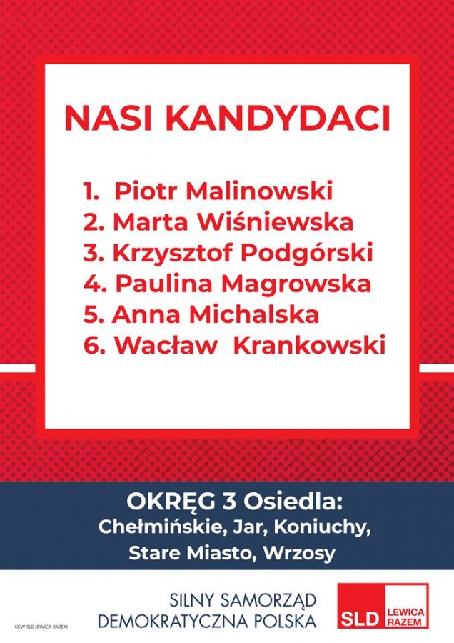 Kandydaci i Kandydatki KKW SLD Lewica Razem do Rady Miasta Torunia
